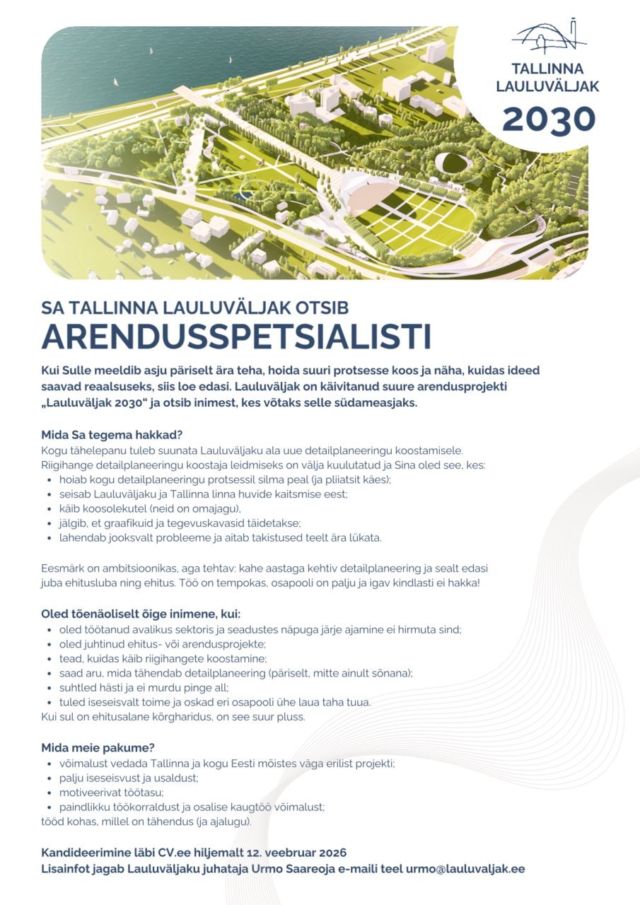 Kas Sinust võiks saada Tallinna Lauluväljaku arendusspetsialist?